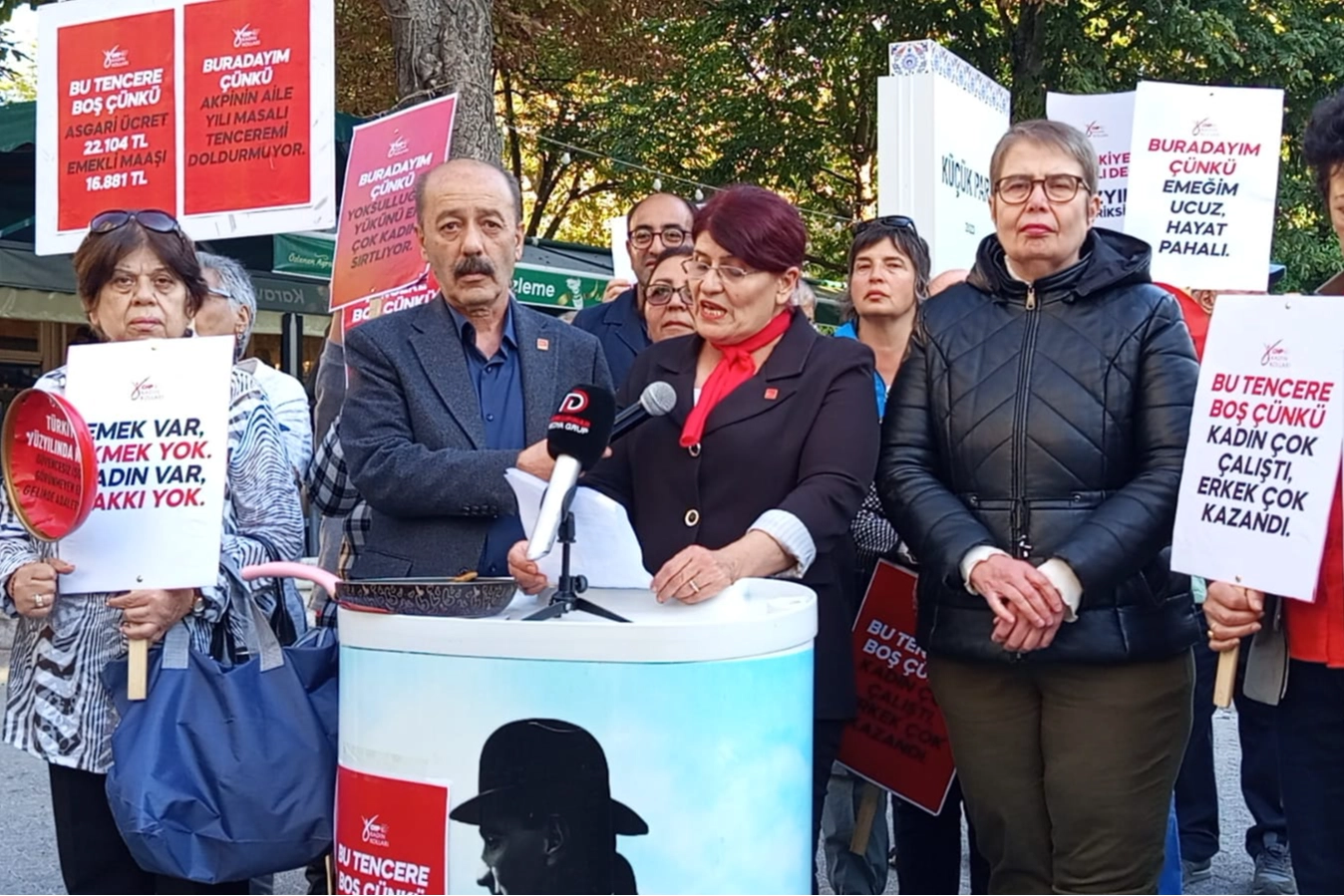 “Kadınlar yoksulluğun en ağır yükünü taşıyor”Yoksulluğun cinsiyetinin olduğunu vurgulayan Münire Kara, “Kadınlar hem evde hem işte görünmeyen emekle sömürülüyor. Kreş yokluğunda işinden oluyor, güvencesizliğe mahkûm ediliyor. TÜİK’e göre kadınların iş gücüne katılım oranı yüzde 36,8. Ancak sahada bu oranların çok ötesinde bir kadın emeği var. Ne yazık ki bu emek görünmez kılınıyor” dedi.