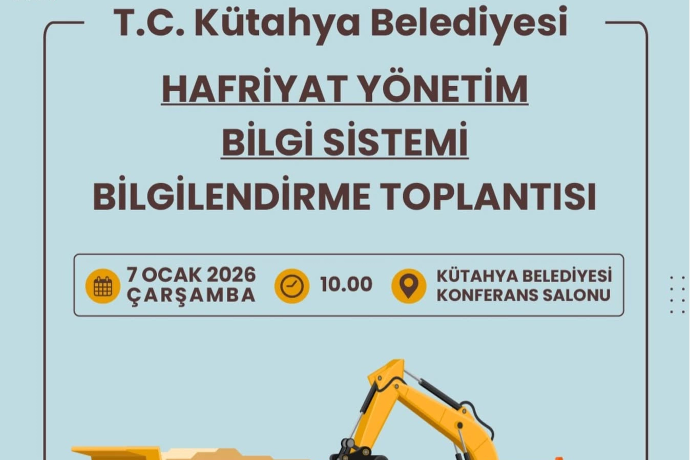 Kütahya Belediyesi Temizlik İşleri Müdürlüğü tarafından hayata geçirilecek olan Hafriyat Yönetim Bilgi Sistemi ile ilgili bilgilendirme toplantısı düzenlenecek. Yeni sistemin işleyişi, uygulama süreci ve sahadaki yansımalarının ele alınacağı toplantı, sektör temsilcileri için önemli bilgiler içerecek. Kütahya Belediyesi Konferans Salonu’nda gerçekleştirilecek toplantı, 7 Ocak 2026 Çarşamba günü saat 10.00’da başlayacak. Toplantıda; hafriyat süreçlerinin dijital ortamda takip edilmesi, denetim mekanizmalarının güçlendirilmesi ve çevresel sürdürülebilirliğin artırılması hedefleri detaylı şekilde anlatılacak. Belediye yetkilileri tarafından yapılacak sunumlarda, Hafriyat Yönetim Bilgi Sistemi’nin kent genelinde nasıl uygulanacağı, firmaların sisteme uyum süreci ve sahada karşılaşılabilecek durumlar hakkında bilgilendirme yapılacak. Toplantıya; müteahhitler, hafriyat işi yapan firmalar, mimarlar ve mühendisler davet edilirken, sistemin doğru ve etkin şekilde uygulanabilmesi için sektör paydaşlarının katılımının büyük önem taşıdığı vurgulandı. Kütahya’da çevreye duyarlı, kontrollü ve kayıtlı bir hafriyat yönetimi hedefleyen sistemin, şehir genelinde önemli bir düzenleme sağlaması bekleniyor.