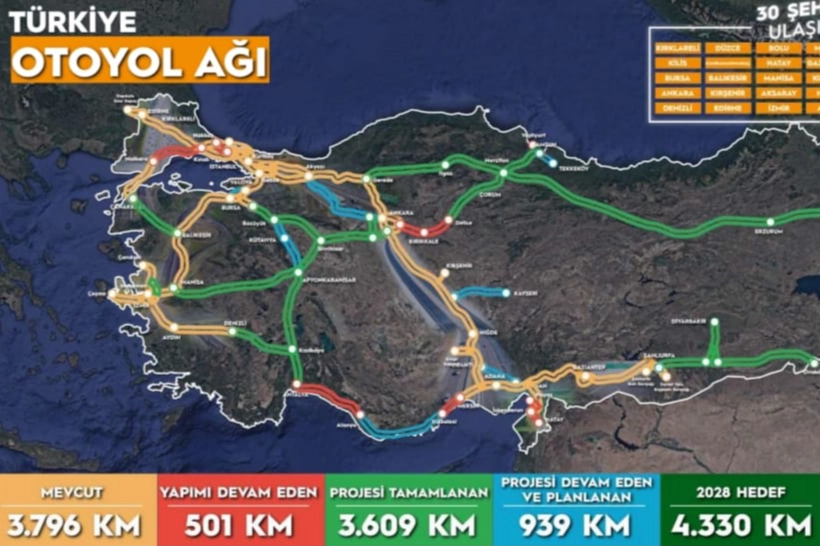 Ulaştırma ve Altyapı Bakanlığı’nın yayınladığı güncel “Türkiye Otoyol Ağı” haritası, Kütahya’nın Türkiye ulaşımındaki stratejik önemini bir kez daha gözler önüne serdi. Haritada özellikle Bozüyük–Kütahya–Afyonkarahisar güzergâhının Batı Anadolu’nun en kritik ulaşım aksı hâline geldiği dikkat çekiyor.