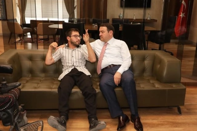 Ayrıca günlük yaşamını kolaylaştırmak adına akülü tekerlekli sandalyesinin yenilenmesi gerektiğini ifade eden Yiğit, bu talebini de Vali Bey’e aktardı.