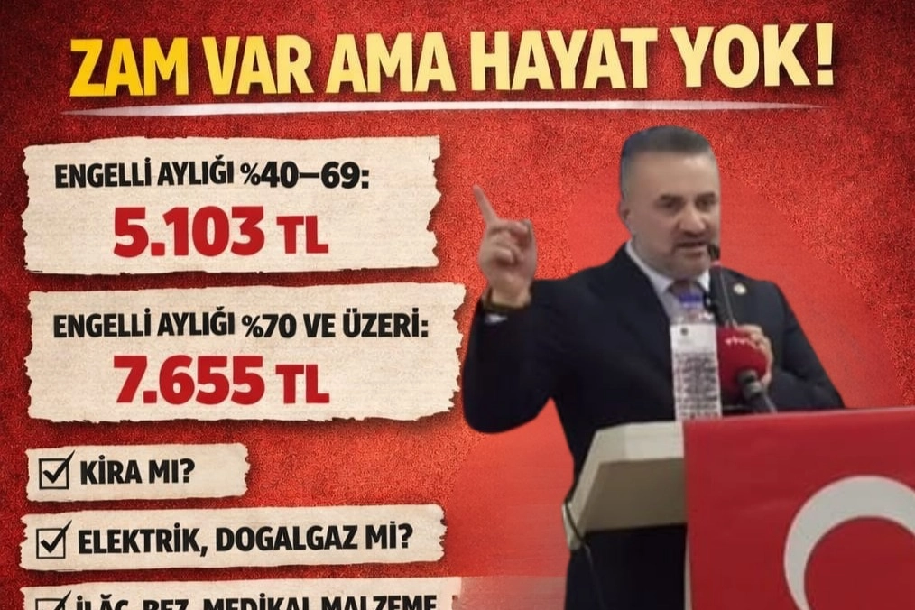 TÜİK verileri sonrası engelli aylıklarına yapılan yüzde 18,60’lık zam kamuoyunda tartışma yarattı. Yeni Çağ Partisi Genel Başkanı Yaşar Çavdar, açıklanan rakamların hayatın gerçekleriyle örtüşmediğini belirterek “Bu bir zam değil, istatistik oyunudur” dedi. Türkiye İstatistik Kurumu’nun (TÜİK) açıkladığı son verilerin ardından engelli aylıklarına yüzde 18,60 oranında artış yapıldı. Buna göre; Yüzde 40–69 arası engelli aylığı 5.103 TL’ye, Yüzde 70 ve üzeri engelli aylığı ise 7.655 TL’ye yükseldi. Ancak açıklanan rakamlar, artan yaşam maliyetleri karşısında yetersiz bulunuyor.