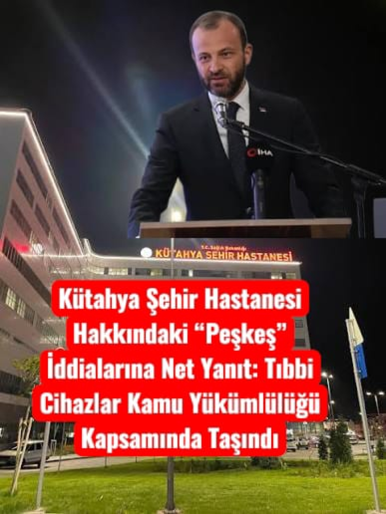 AK Parti Milletvekili İsmail Çağlar Bayırcı, Kütahya Şehir Hastanesi'ne ilişkin "peşkeş" iddialarının asılsız olduğunu belirtti. Hastane, Kamu-Özel İş Birliği modeliyle faaliyet gösteriyor ve taşınan cihazlar kamu kararıyla kullanılmakta. Sağlık hizmetleri memnuniyet oranı %86, günlük 7500 hastaya hizmet veriliyor. Randevularla ilgili iyileştirmeler yapıldı, yeni ekipmanlarla tanı süreci hızlandı.