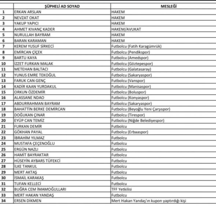 Hazırlanan iddianamenin önümüzdeki süreçte mahkeme aşamasına taşınması beklenirken, dosyada yer alan isimler spor camiasında dikkat çekti.