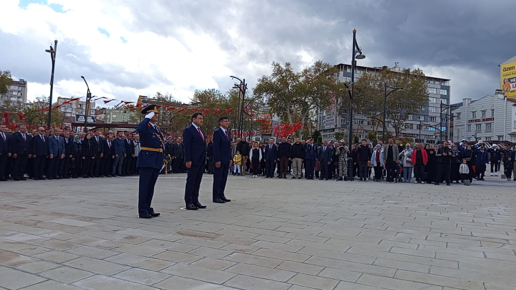 Türkiye Cumhuriyeti’nin kuruluşunun 102. yıl dönümü, Kütahya’da büyük bir heyecan ve gururla kutlandı. Kütahya Valiliği önünde düzenlenen törende, Atatürk Anıtı’na çelenk sunumu gerçekleştirildi. Program, saygı duruşu ve İstiklal Marşı’nın okunmasıyla başladı.