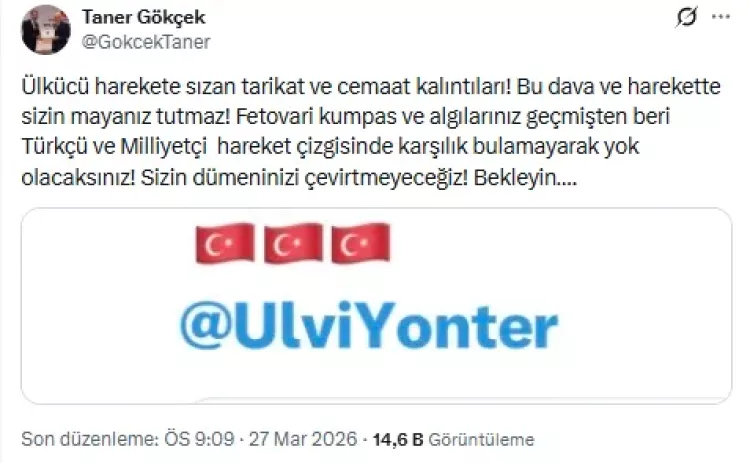 “Ülkücü harekete sızan tarikat ve cemaat kalıntıları! Bu dava ve harekette sizin mayanız tutmaz! Fetovari kumpas ve algılarınız yok olacak…”
